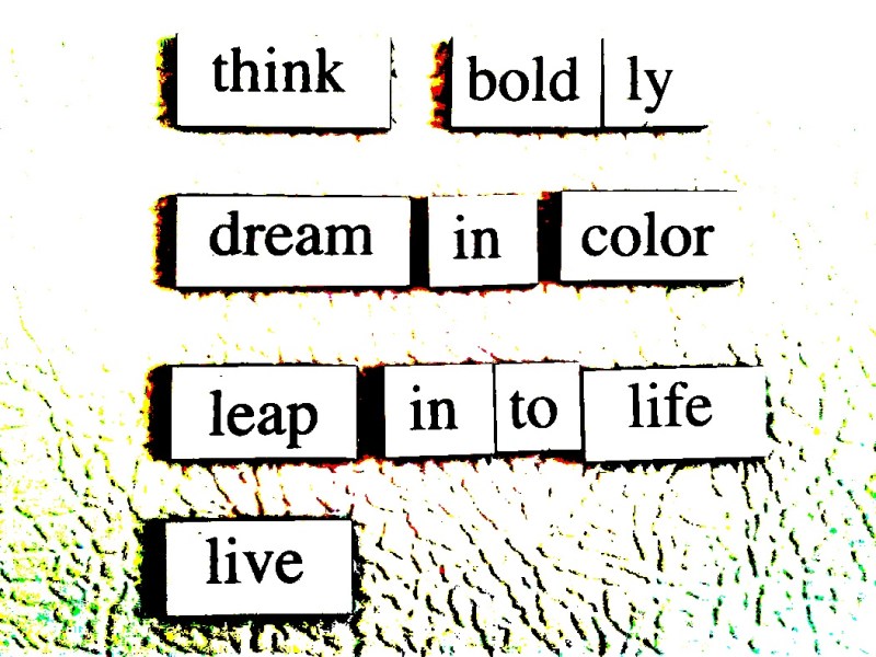 An original poem crafted with magnetic letters and words and posted on my refrigerator. I purchased the set at an Owatonna thrift store.