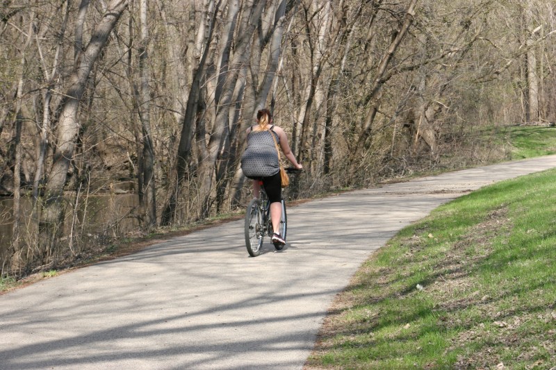 After the daughter and her husband left for their Wisconsin home on Sunday afternoon and Randy and I completed clean-up tasks and I hung laundered linens on the clothesline, we drove across town to walk along recreational trails. We needed to stretch our legs, to work off some calories, to delight in the stunning spring day.