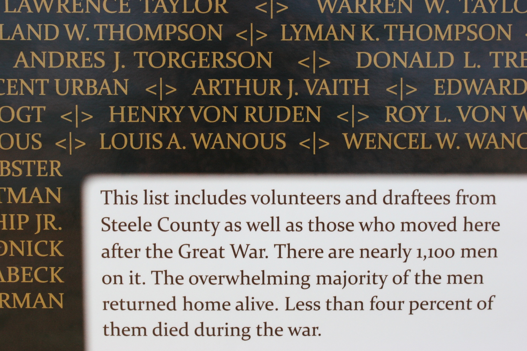 WW I from a Steele County, Minnesota, personal perspective » WW I exhibit, #63 list of names intro
