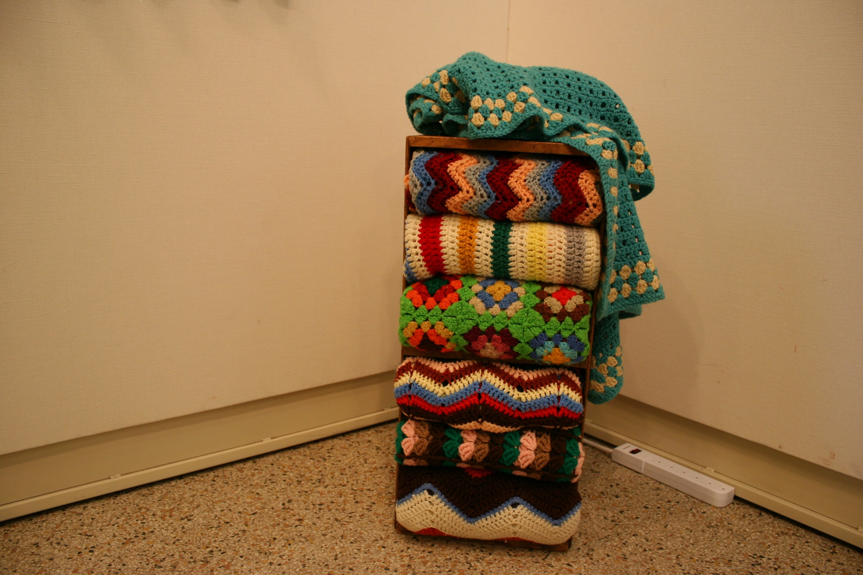 “Crochet in Translation”: the art of Malia Wiley » Malia Wiley, #72 stack of crocheted afghans