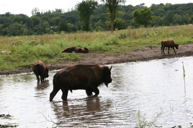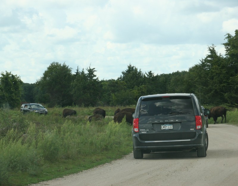 Walking toward Seppman Mill, located just outside a fenced area holding bison at Mnneopa State Park, rural Mankato, Minnesota.