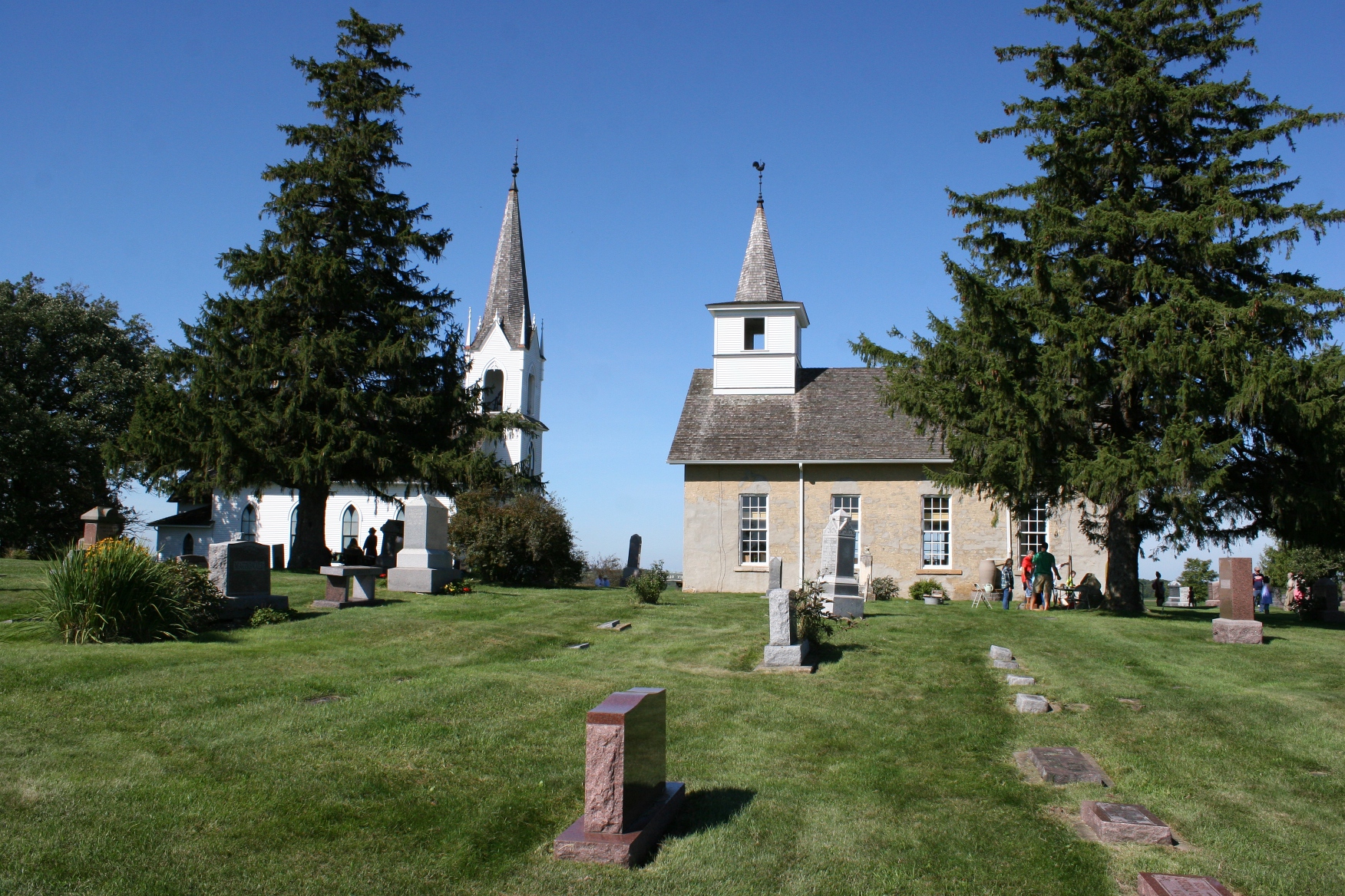 The beautiful and well-preserved historic churches of Valley Grove as photographed from the cemetery.