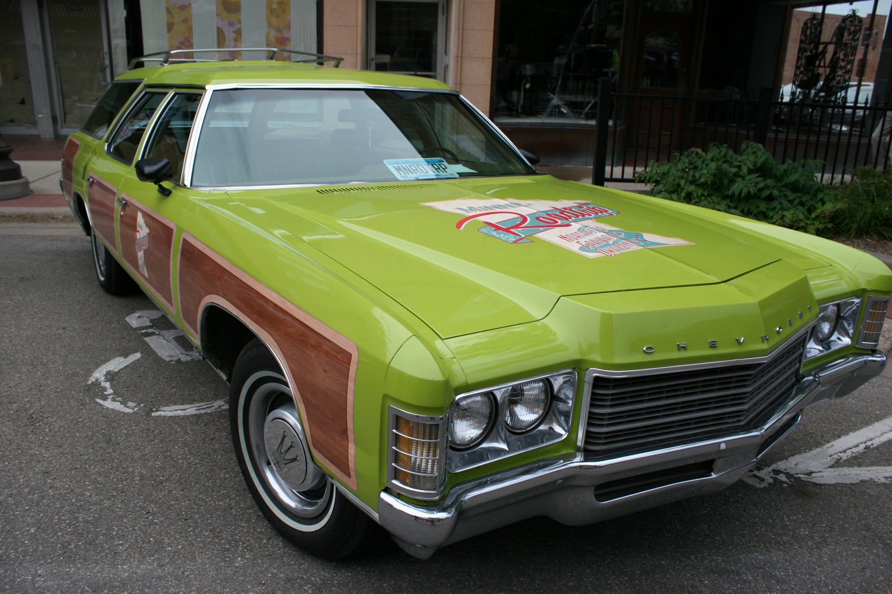 This vintage wagon promotes tourism and the Minne-Roadtrip that includes the communities of Faribault, Northfield and Owatonna.
