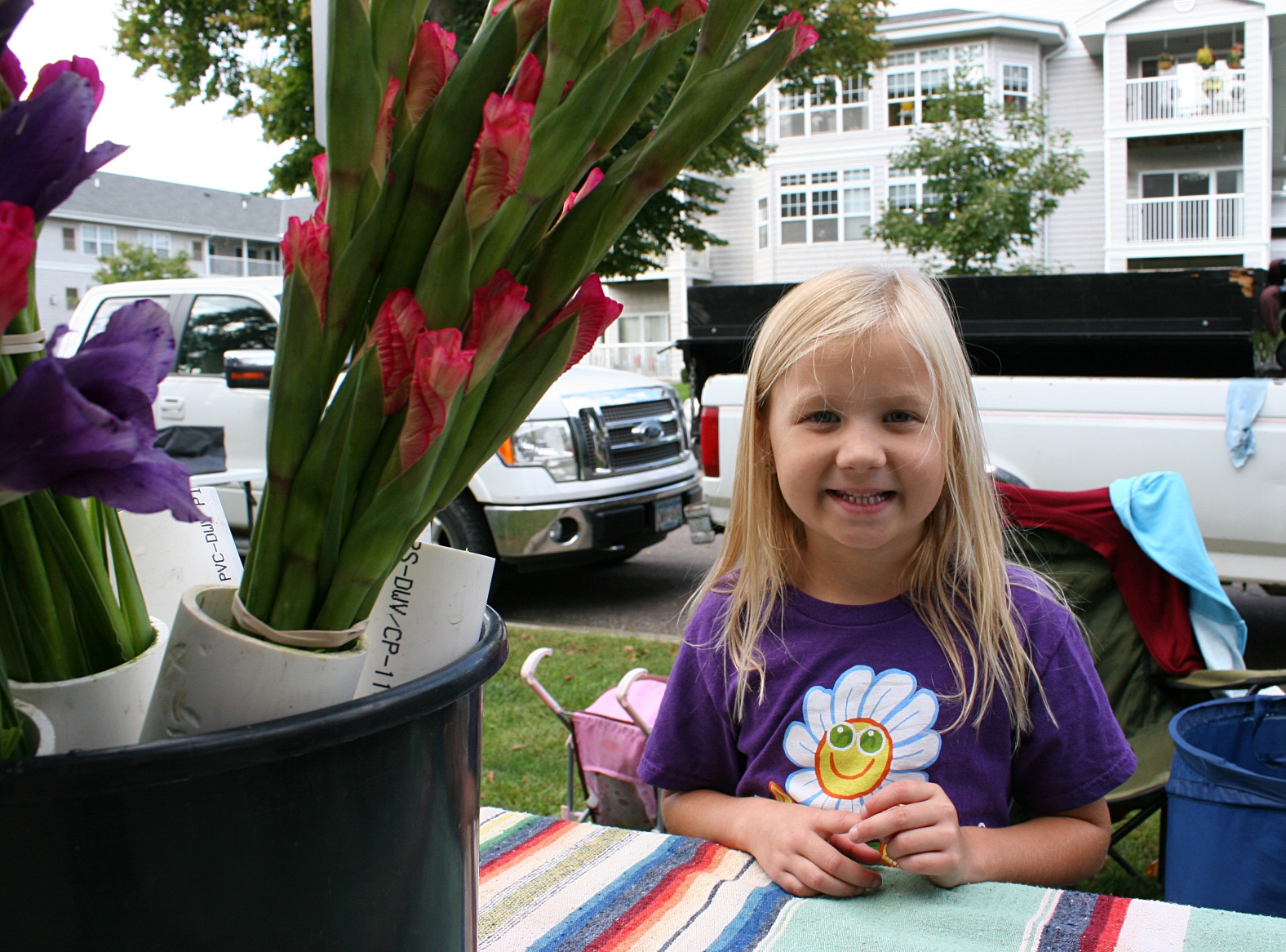 One of the youngest vendors from Three Glad Girls sells gladiolus.