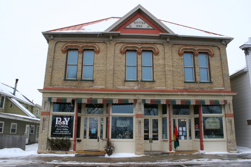 Historic Hilltop Hall houses the Montgomery Arts and Heritage Center on the right and a floral and gift shop on the left.