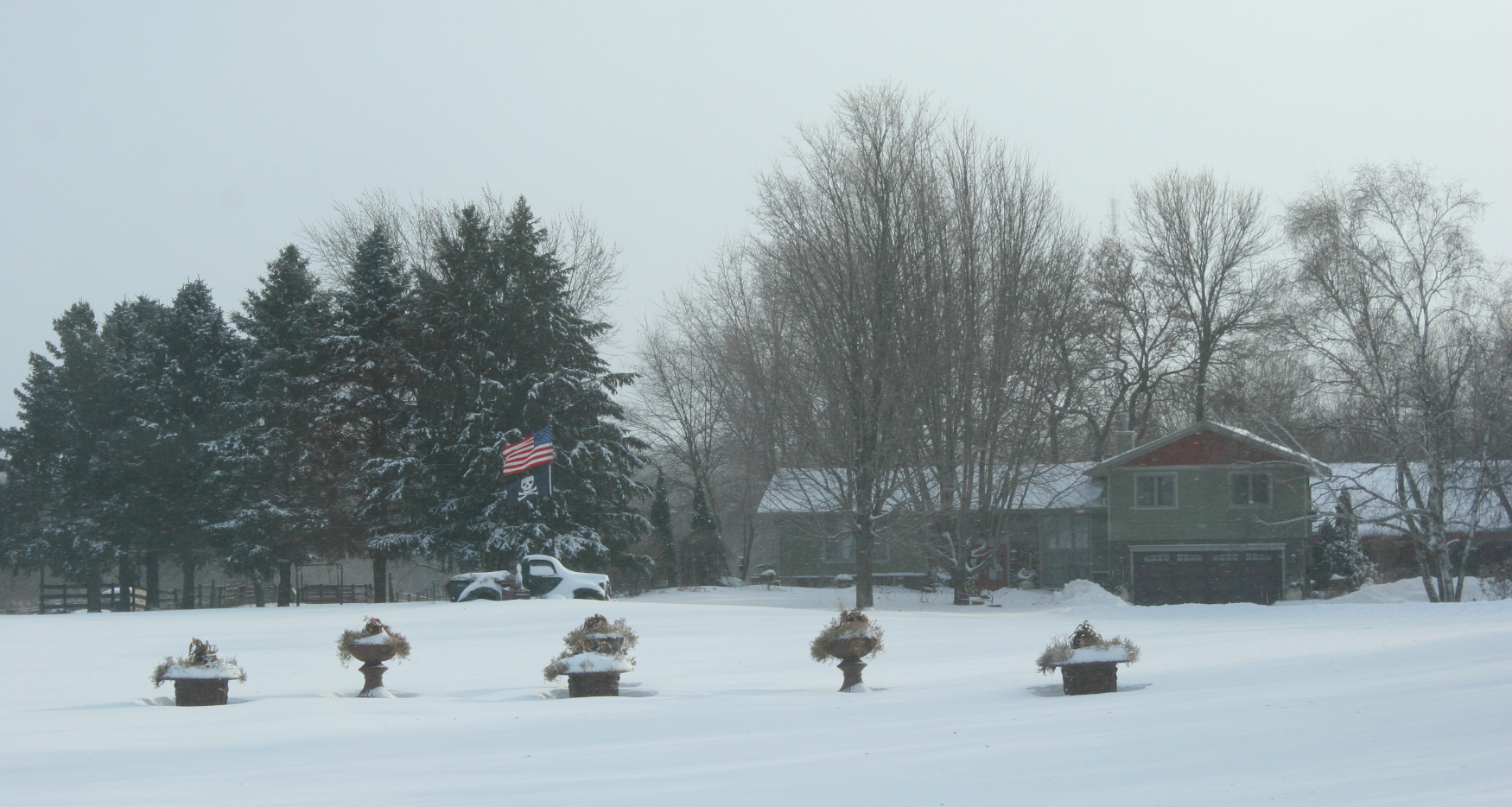 The American flag flying straight out shows the strength of Saturday’s wind on a farm site just east of Faribault along CR 25.