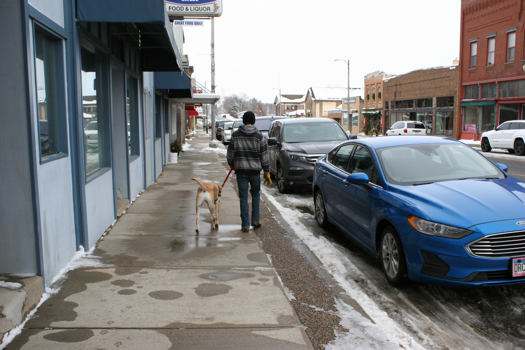 The friendly young man I met while photographing downtown. He paused to let me pet Buddy.