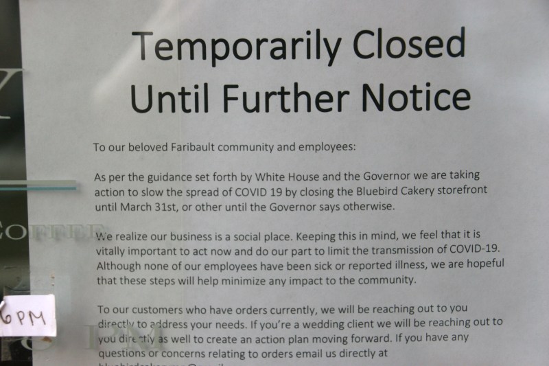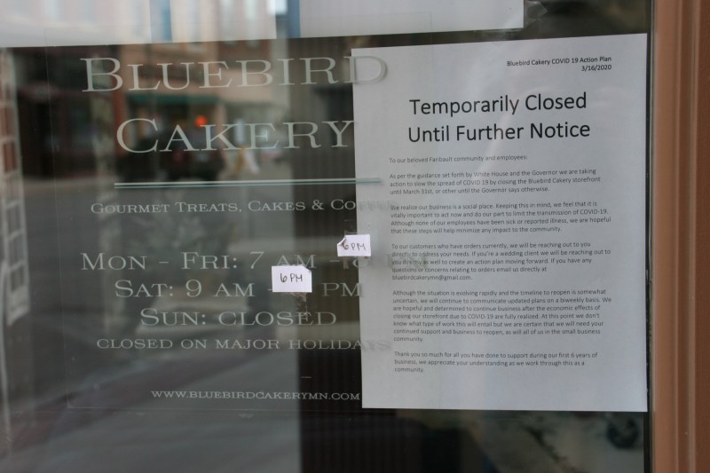 Most messages are simple. But the sign displayed in the window of Bluebird Cakery carries an emotional tone, beginning with these words: To our beloved Faribault community and employees…