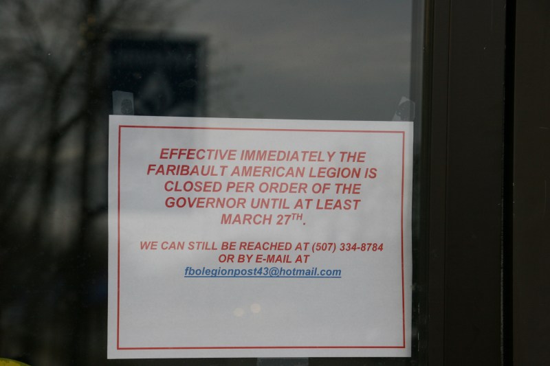 Tuesday evening, on the day the Governor of Minnesota ordered all bars and restaurants and other social gathering places like bowling alleys, theaters and museums to close by 5 pm, I grabbed my camera to document this order. In signs posted in my southern Minnesota community.