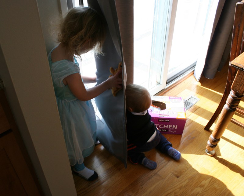 The grandkids play hide-and-seek behind curtains, while in Grandma and Grandpa’s care. Minnesota Prairie Roots file photo February 2020.