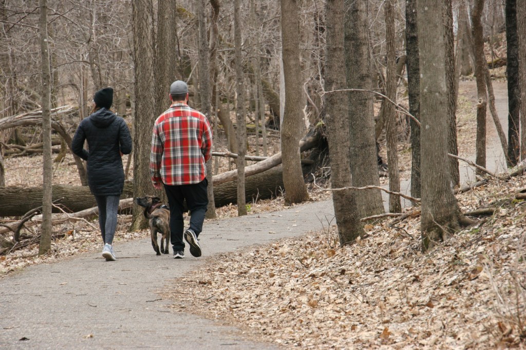 Walkers kept their distance from each other.