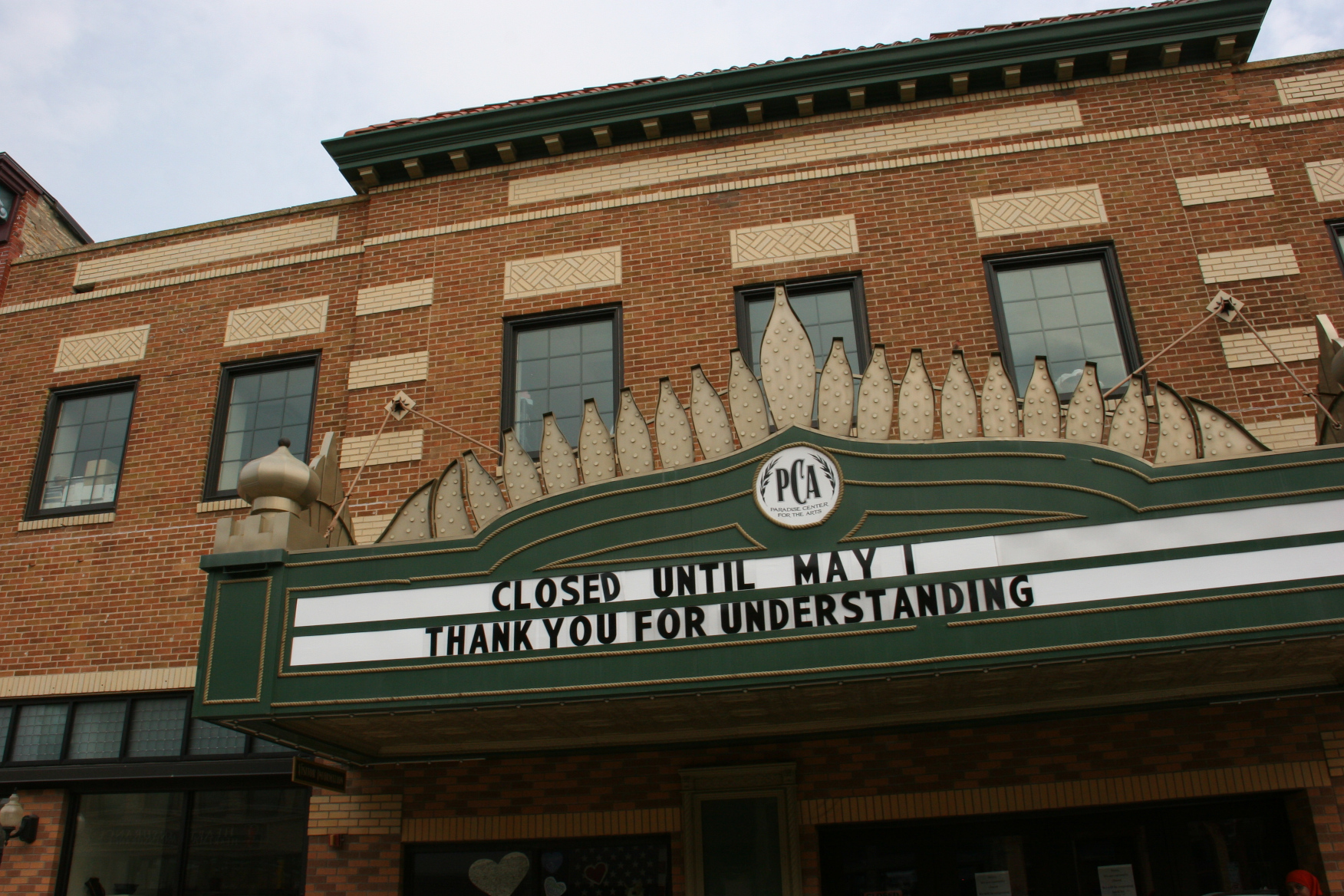 The Paradise marquee shows the arts center is closed until May 1, maybe longer.