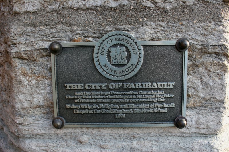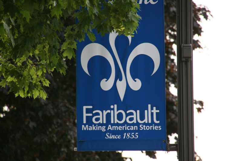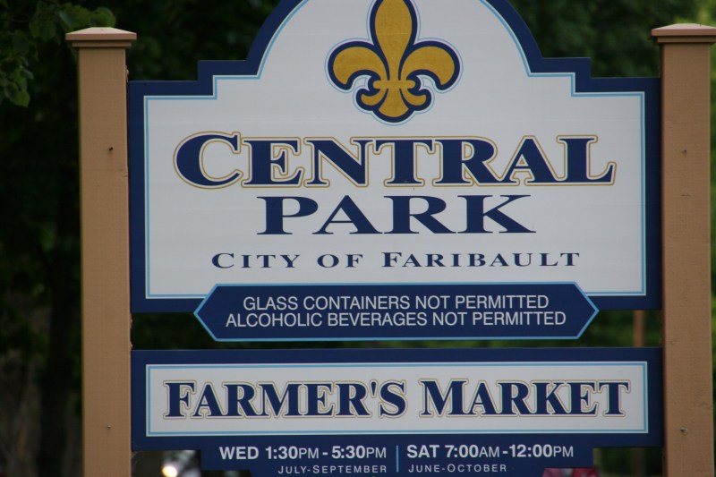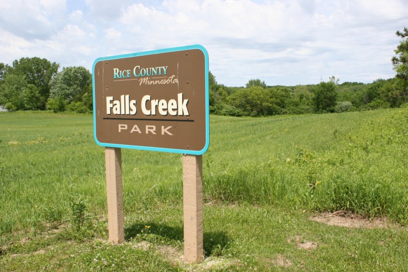 Falls Creek County Park is located one mile east of Faribault along Minnesota State Highway 60, just off the highway an eighth of a mile along a gravel road to the north. This sign is visible from Highway 60.