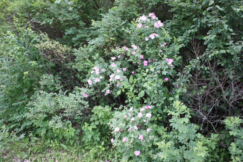 I didn’t recall wild roses. Those I would remember because I love wild roses. They remind me of my native prairie home, where, decades ago, pink roses grew random in road ditches. Oh, the sweet scent and the sweet memories.