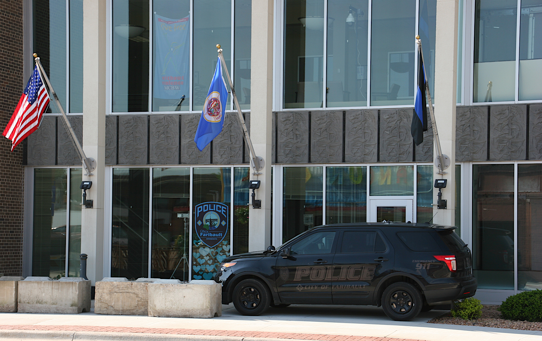 A protected police department, up close, on Saturday morning.
