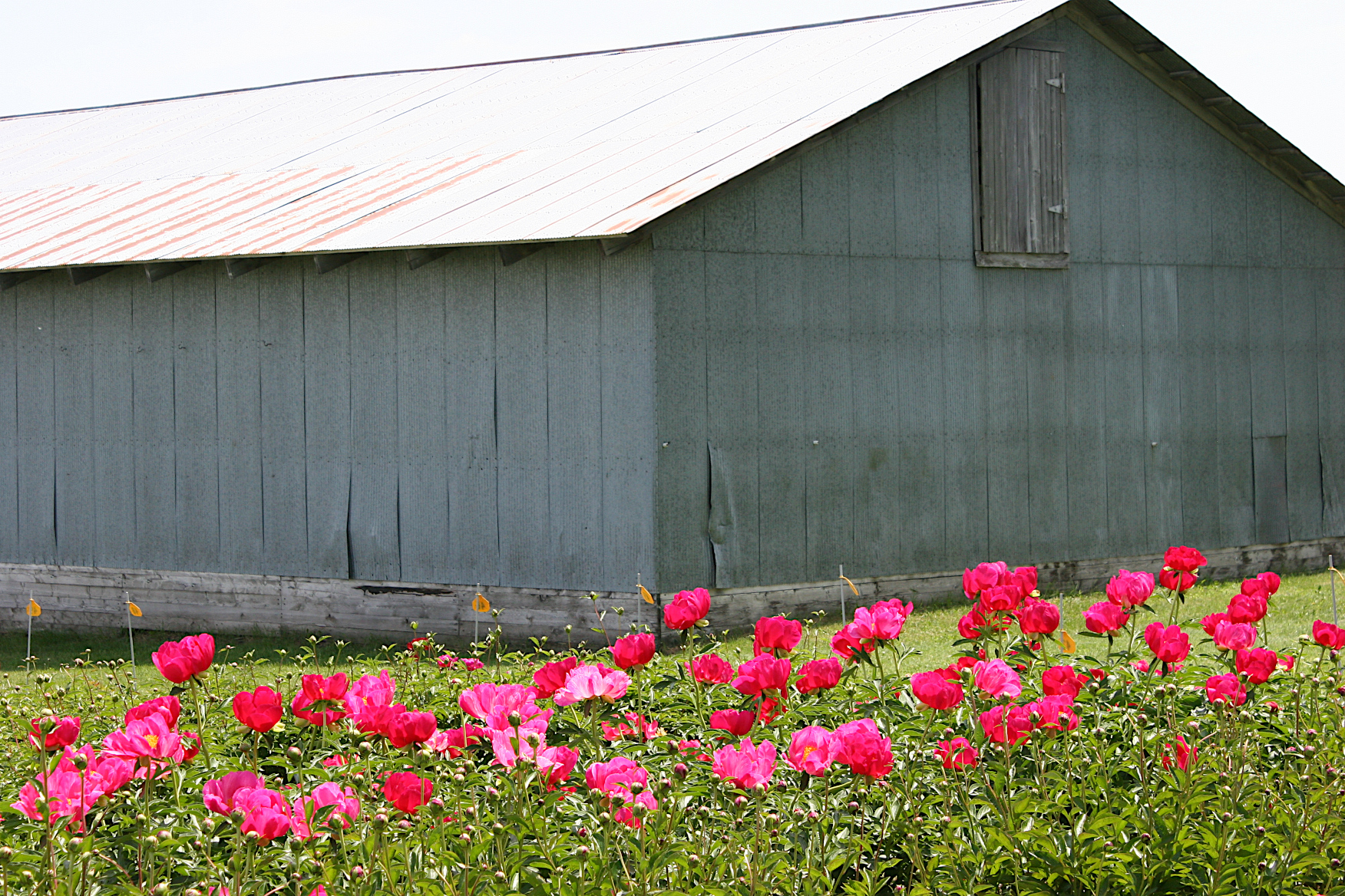 At Aspelund: Peonies & wine » Peony gardens, #7951 against grey shed backdrop