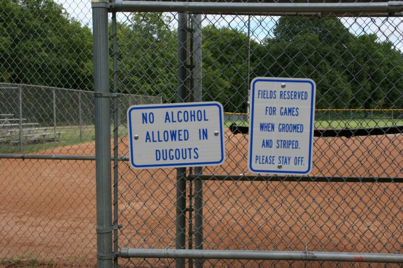 Yet, when I saw signs on the exterior of fences surrounding the dugouts I noticed a discrepancy. One read: NO ALCOHOL ALLOWED IN DUGOUTS. The other read: ALCOHOL ALLOWED IN DUGOUTS. So which is it?