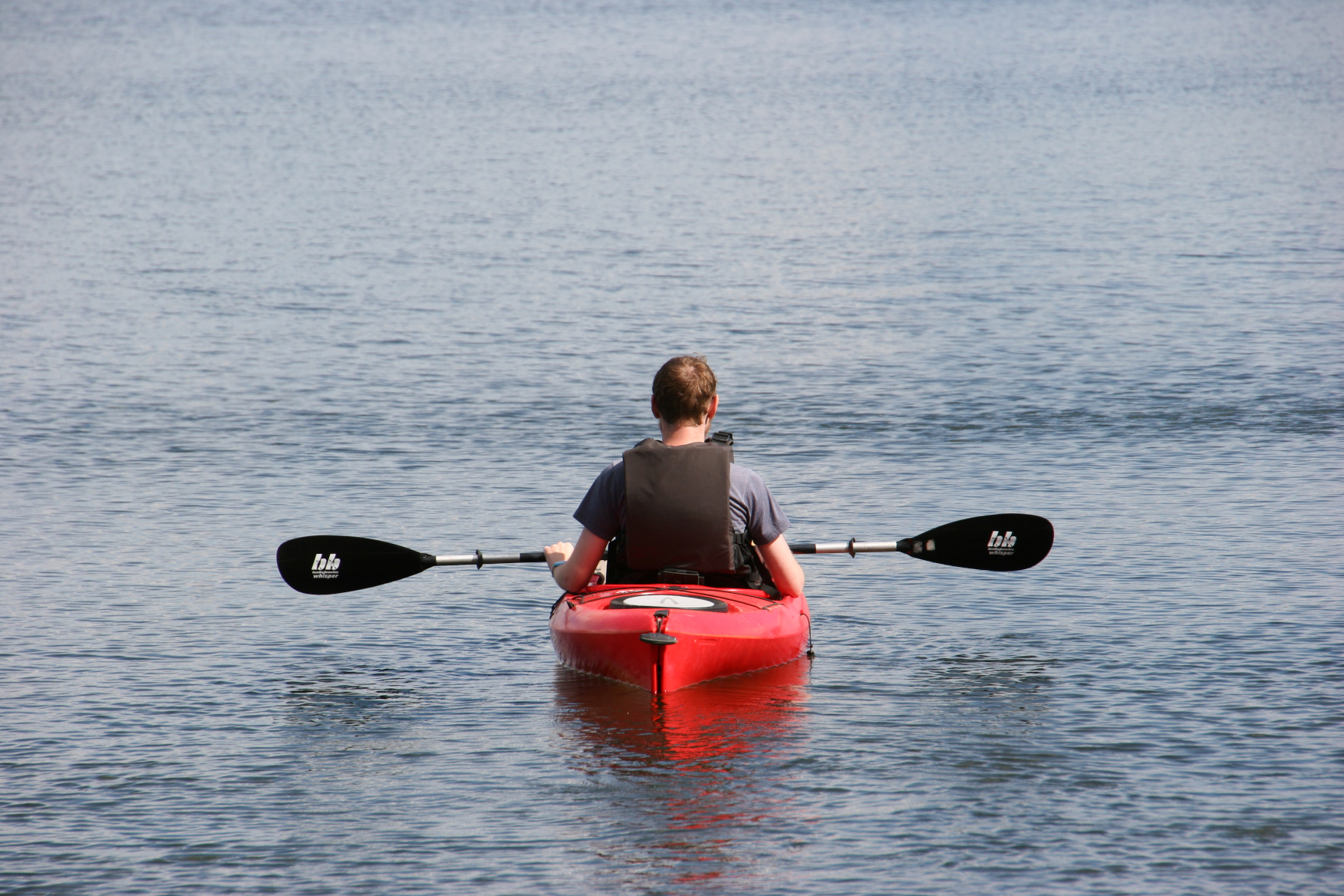 Our son, back in Minnesota for our family vacation, paddles into the lake.