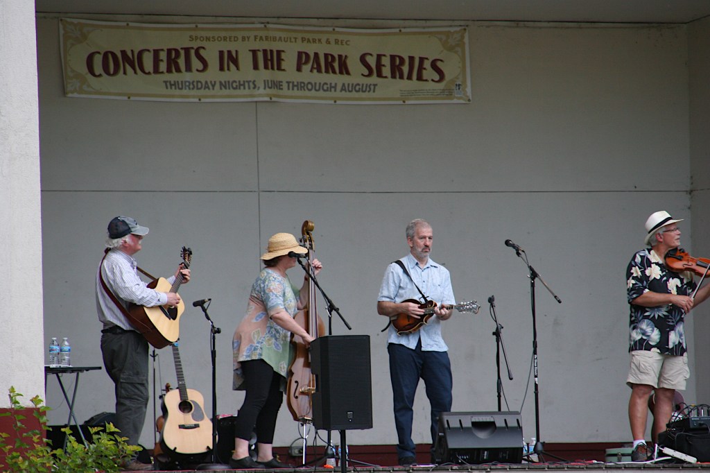 Three members of the Long Time Gone band perform during the July 16 Faribault Concerts in the Park.