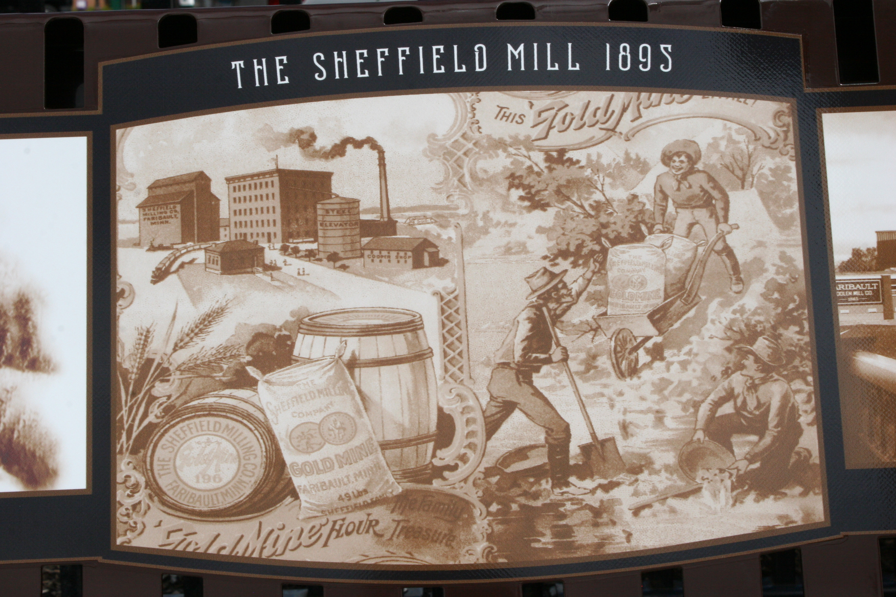 A close-up on the milling bench shows a flour mill that once operated here.