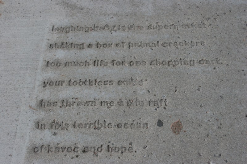 I read this in words imprinted in cement as part of Northfield’s Sidewalk Poetry Project.