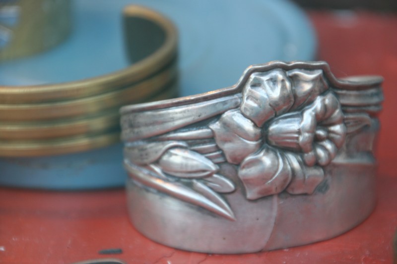 Photographed through the front window of MakeShift Accessories, a handcrafted bracelet.