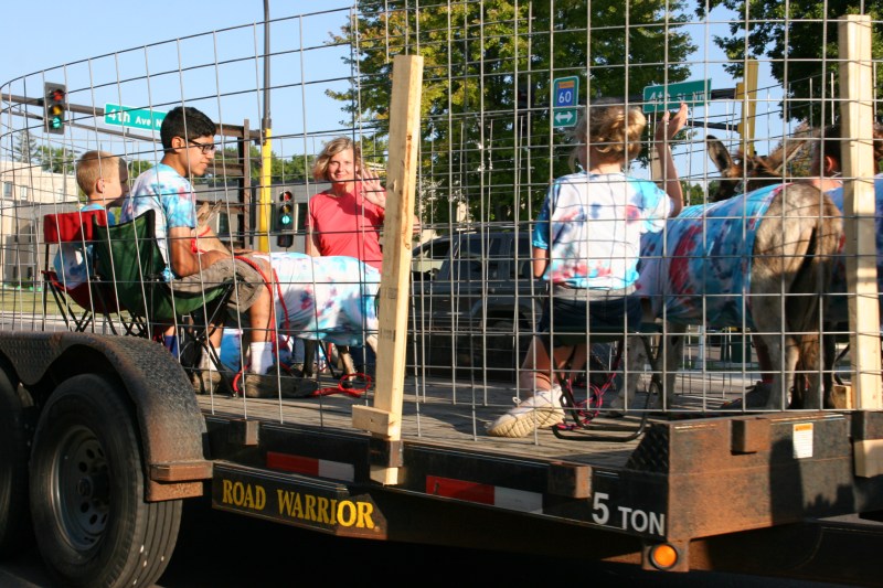 Numbers were down considerably from previous parades when kids cram streets and parade watchers fill sidewalks. Randy and I were the lone observers sitting in our lawn chairs along a busy stretch of Minnesota State Highway 60/Fourth Street, the main route into the heart of downtown.