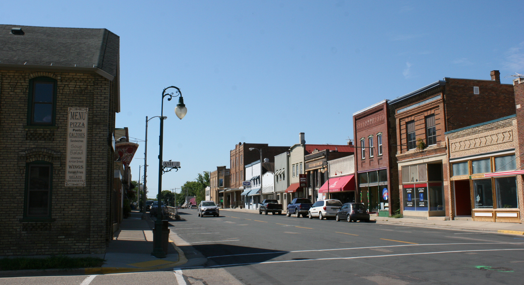 A section of downtown Montgomery, including the popular eatery, Pizzeria 201, on the left.
