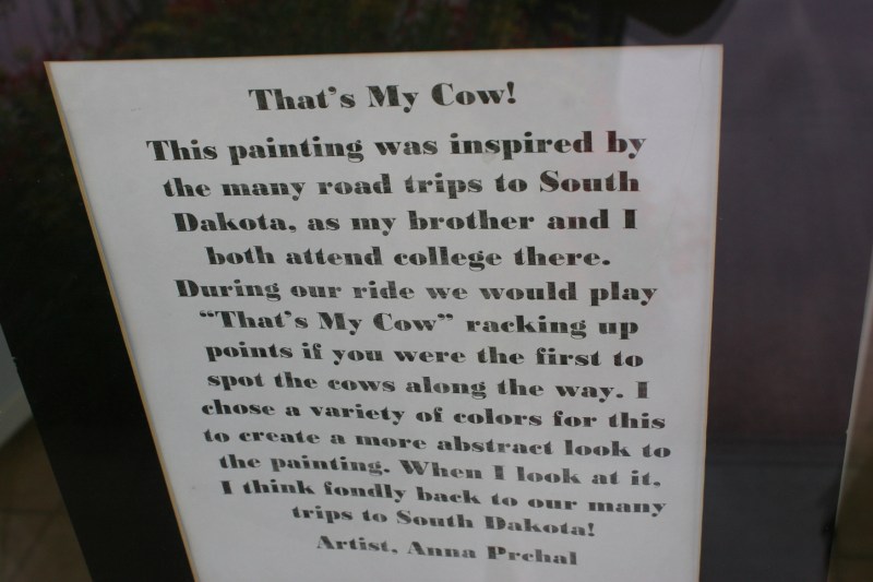 This artist statement made me laugh out loud. Because of glare, I was unable to photograph Anna’s cow art.