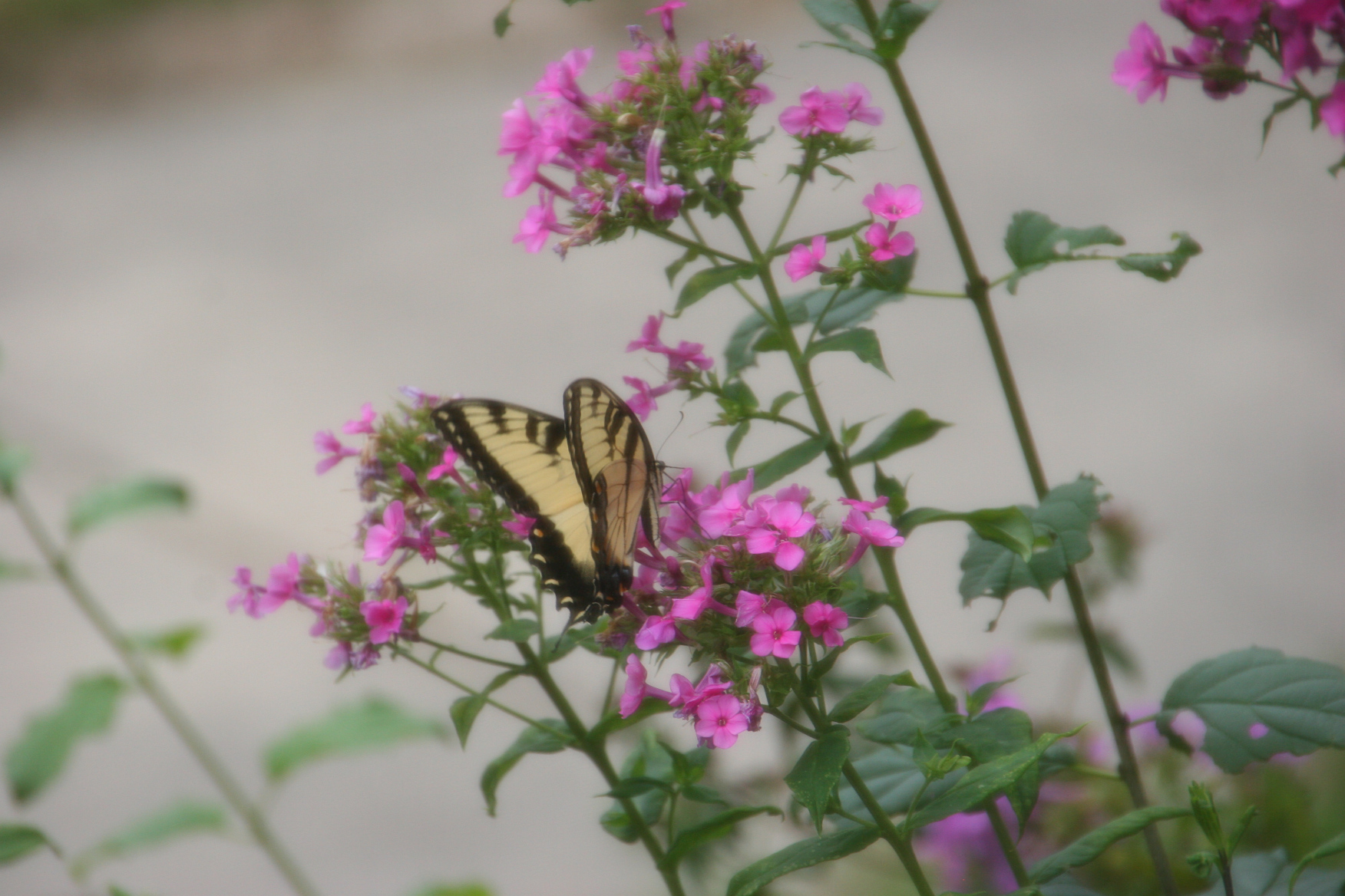 An Eastern tiger swallowtail butterfly feeds on my phlox.