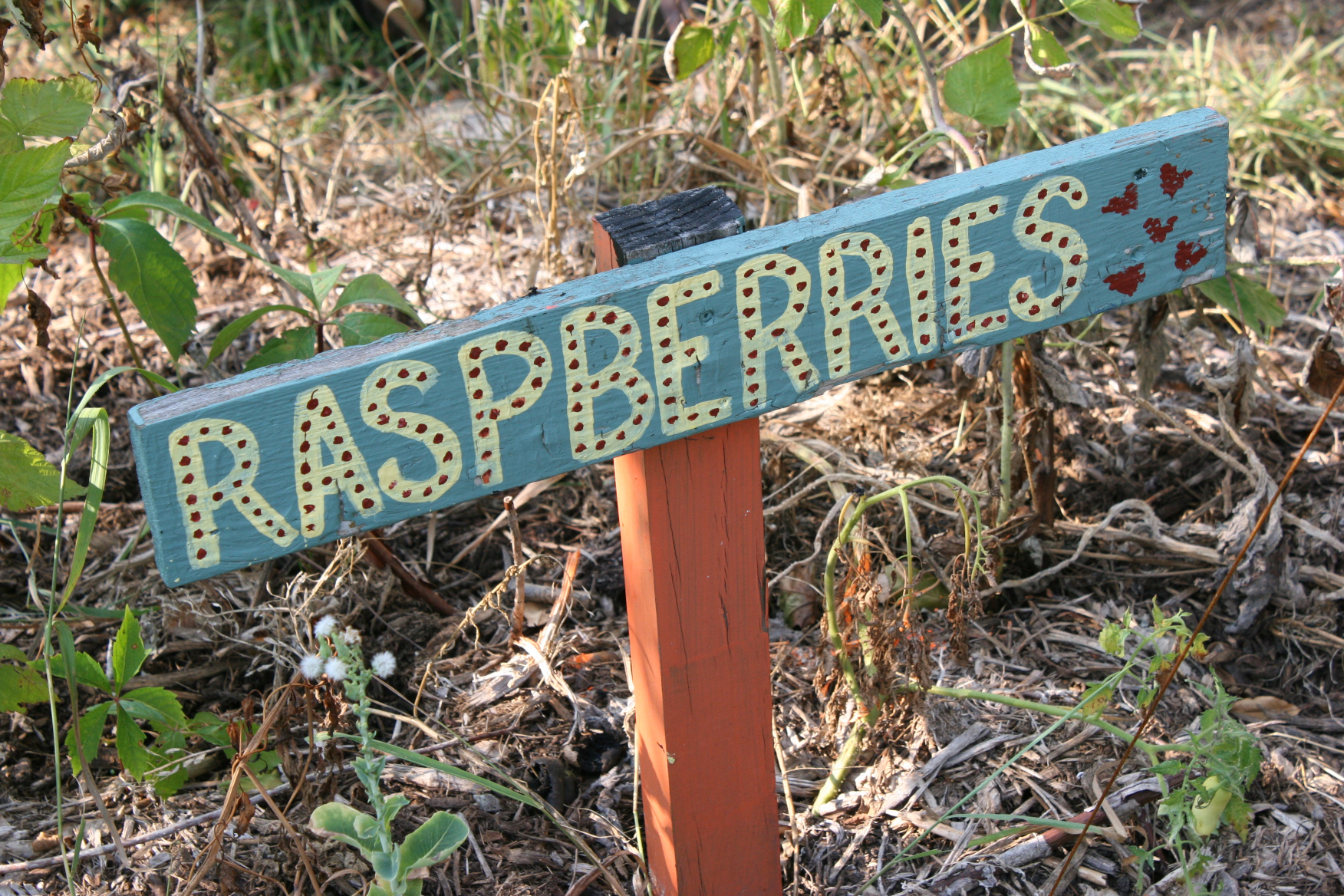 An artsy sign in the community garden.