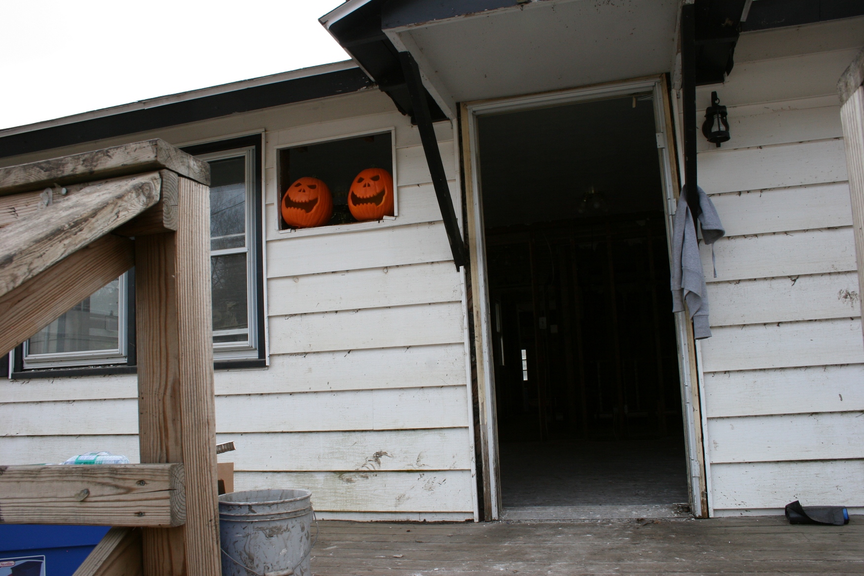The owner of this water-ravaged home in Zumbro Falls still has a sense of humor as Halloween approaches in 2010 following a devastating flood. Minnesota Prairie Roots file photo 2010.