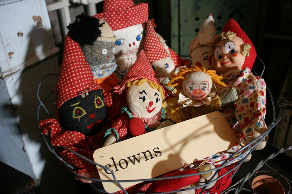Clowns don’t scare me. But I know they frighten some people. Photographed in 2016 in a Janesville antique shop. Minnesota Prairie Roots file photo.