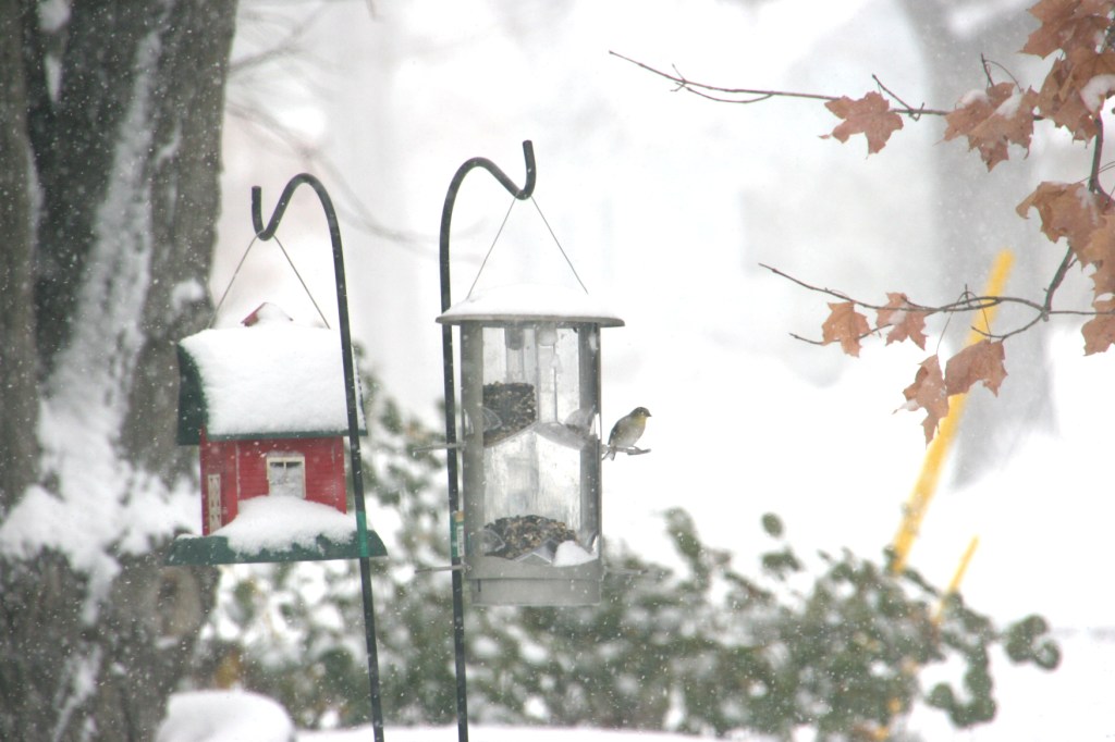 All of this I observe from inside the warmth and comfort of my home with no reason to go outdoors. Earlier this morning, before the snow began, I hustled to haul flower pots, a water fountain and other garden art into the garage. Now I’m hoping I won’t need to head out later to shovel…because the snow shovels are still stored in the rafters.