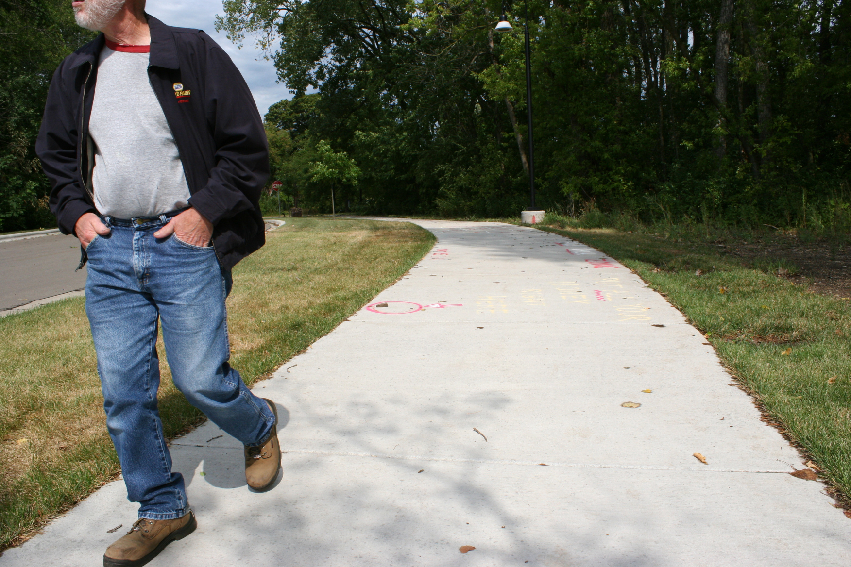 Randy walks through the SILLY ZONE on his way to Garver Feed Mill.