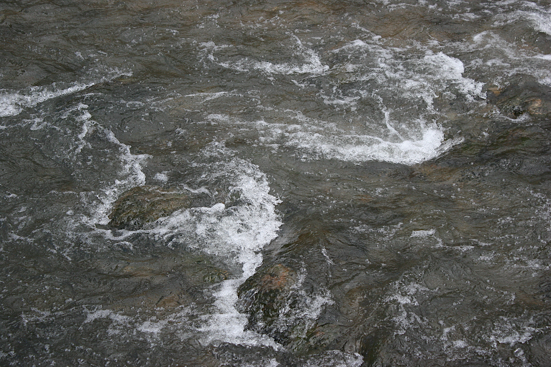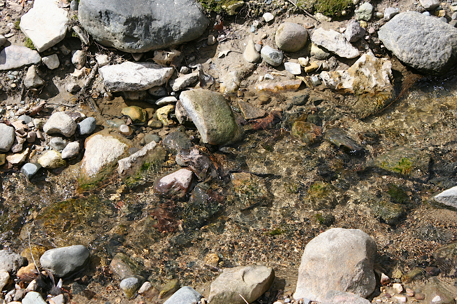 And we also always walk to the side of the creek, to examine the water at the bend, before it flows under the bridge. Recent rain left that water muddied. Later we would find the creek flowing clear.