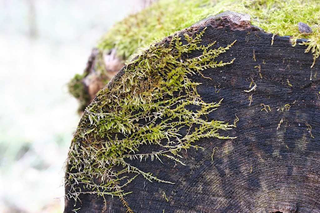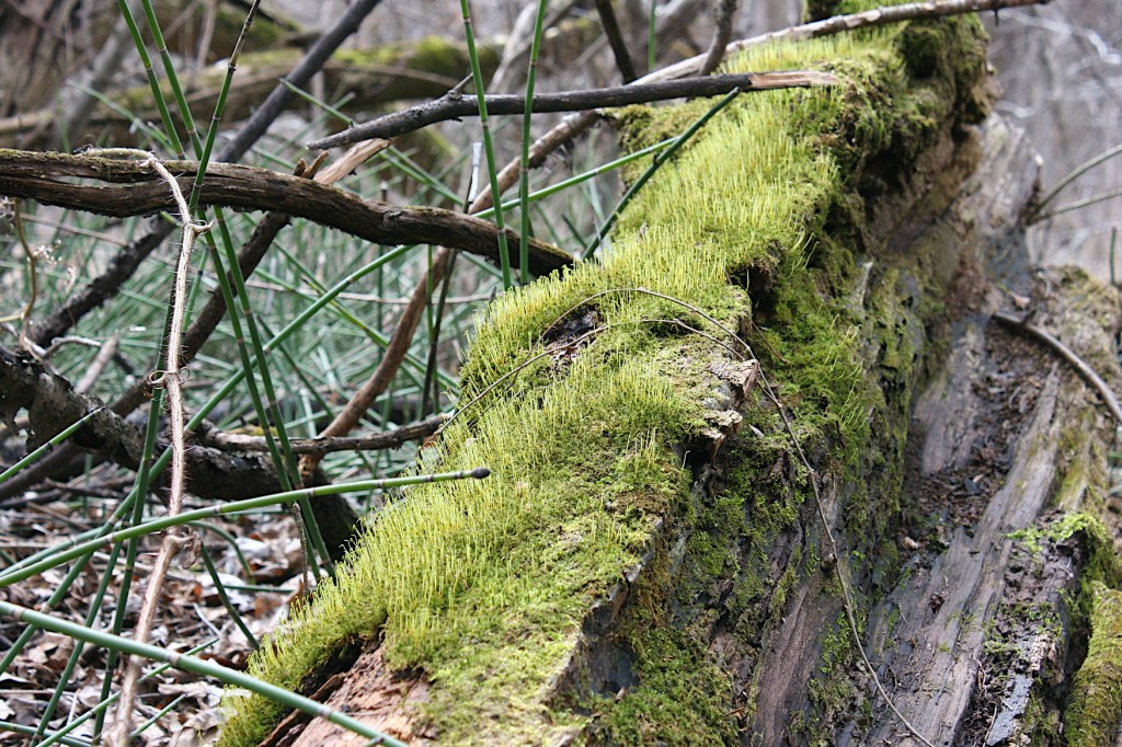 Entering the woods, I determined to photograph signs of spring in the muted landscape. That requires focus. Examples of spring are elusive and seen mostly in vivid green moss carpeting fallen tree trunks.