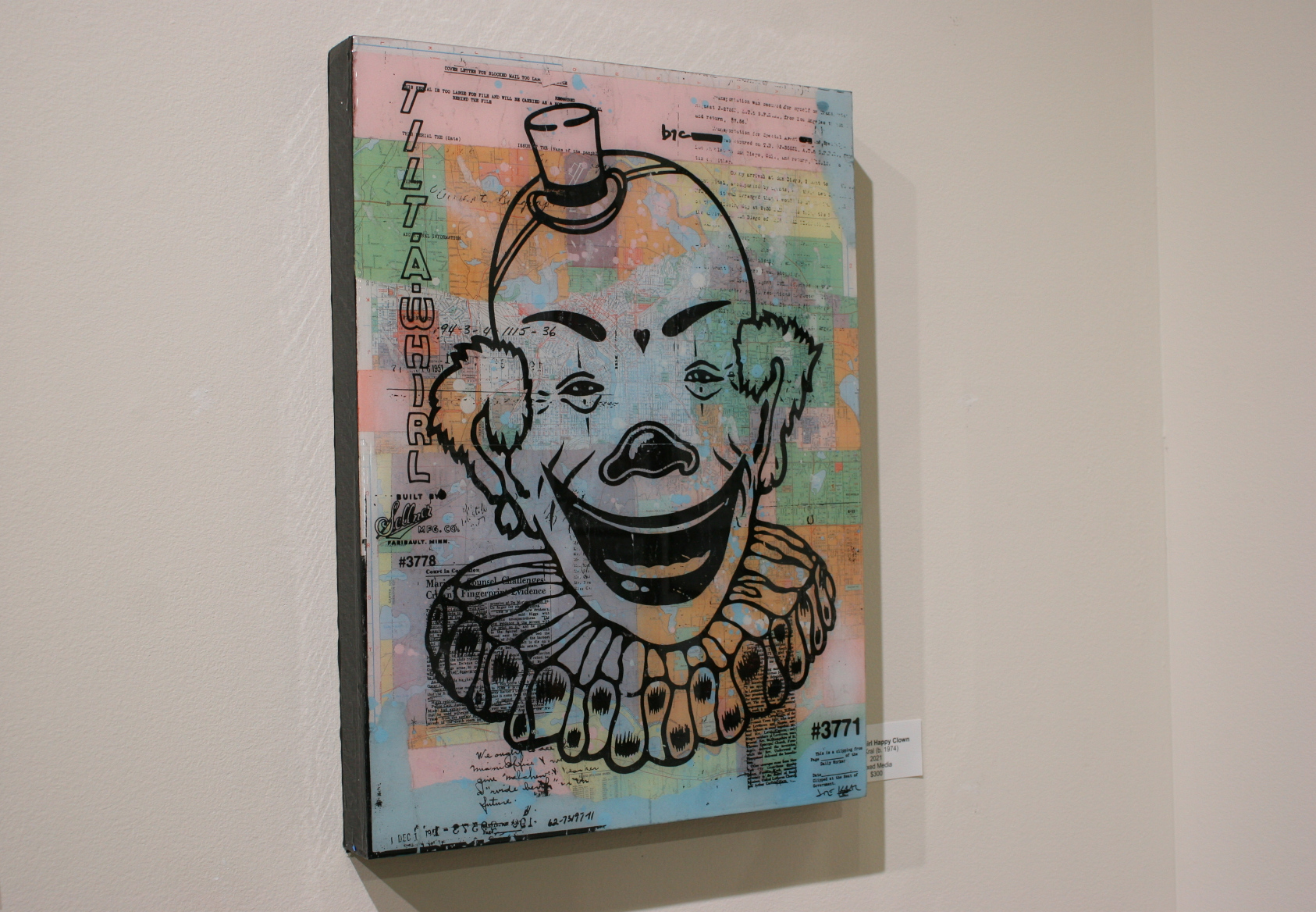 “The Happy Clown.” Kral’s art celebrates the clown graphic used on the Tilt-A-Whirl amusement ride created and made in Faribault, up until recently.
