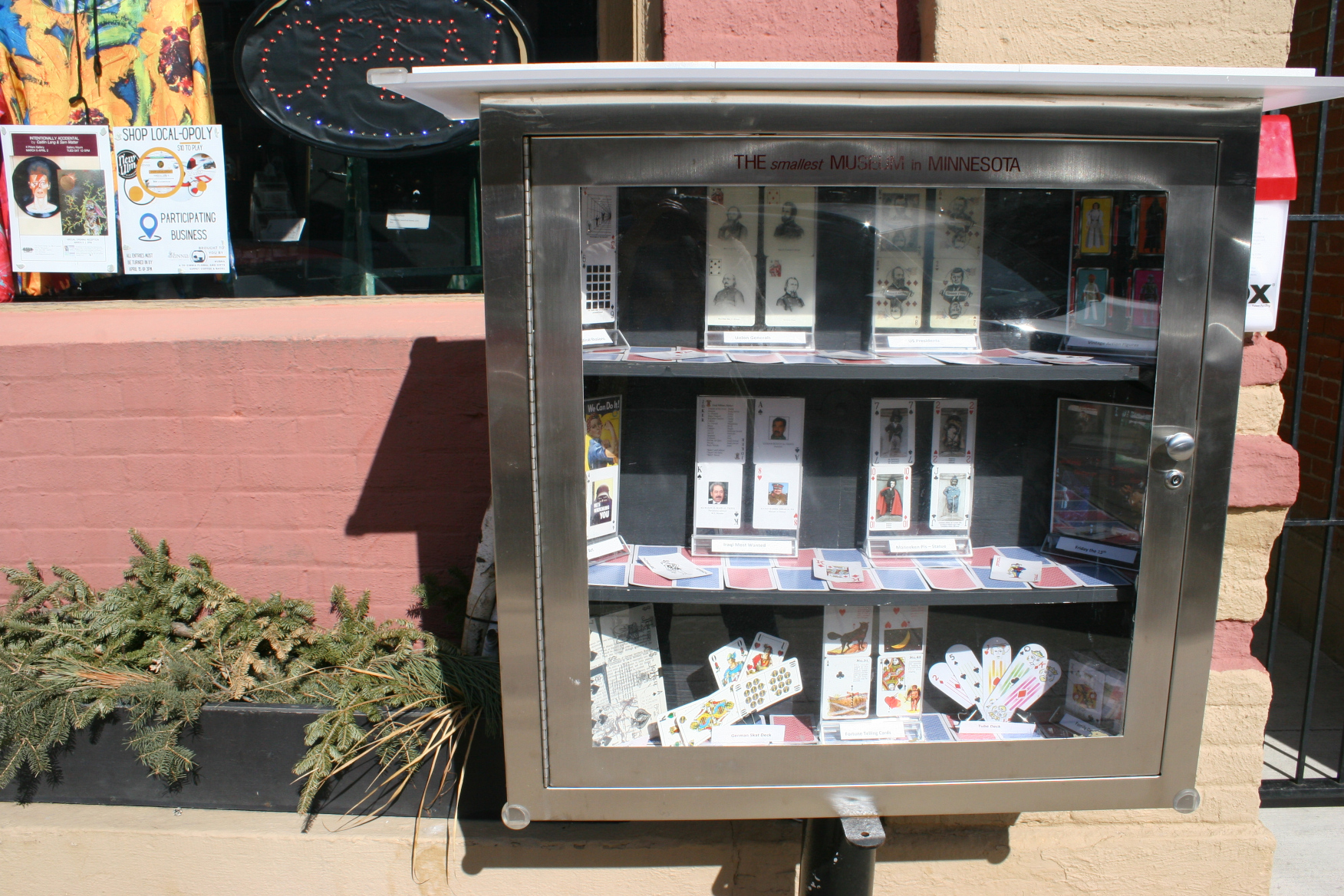 I love this concept for its uniqueness and also its public accessibility. Posted outside The Grand, this museum is viewable 24/7. Similar museums, the Hoosesagg Museum (Pants Pocket Museum) and The Smallest Museum in St. Paul, inspired the one in New Ulm. The museum also reminds me of Little Free Libraries.