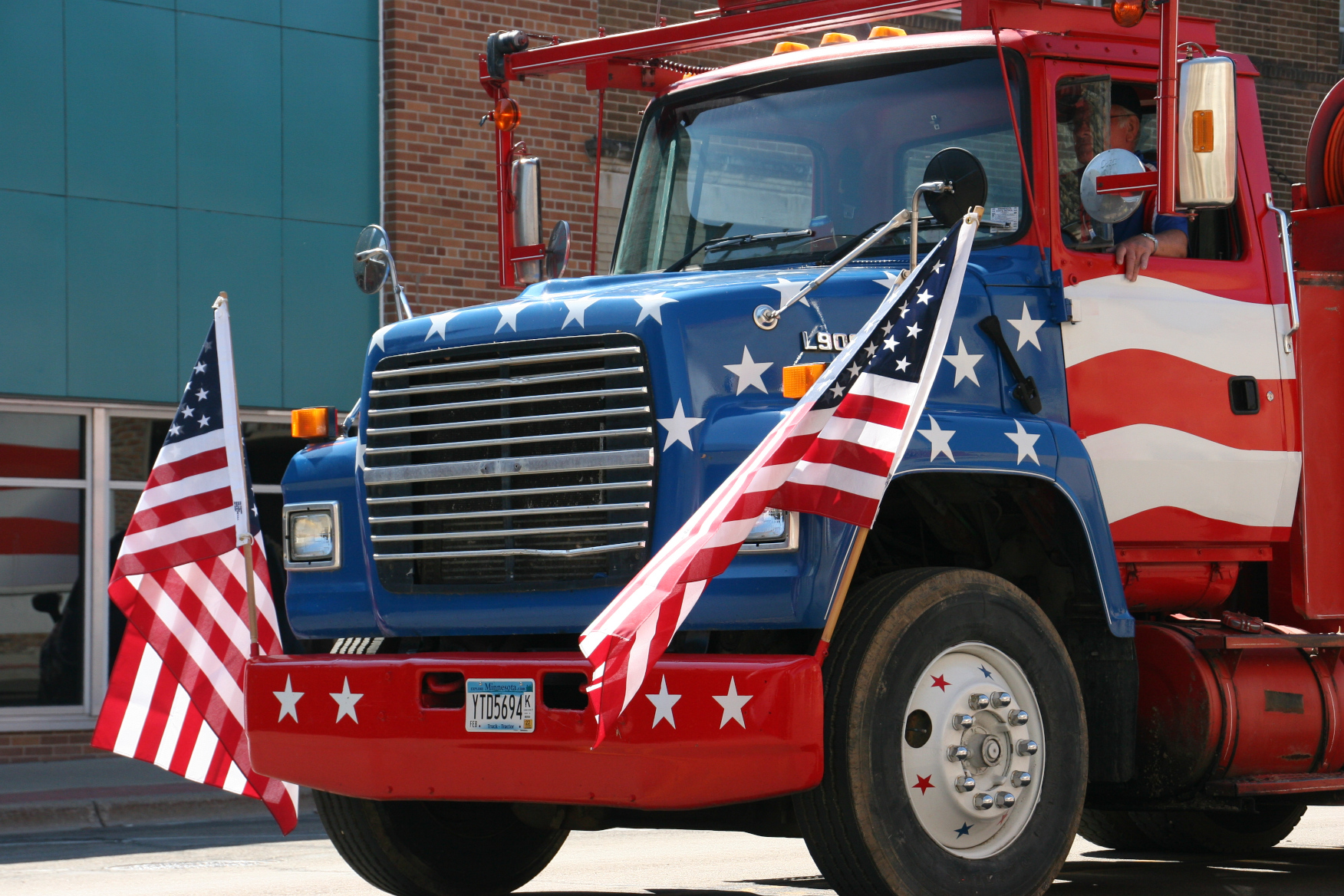 A particularly patriotic truck. Minnesota Prairie Roots copyrighted photo 2021.