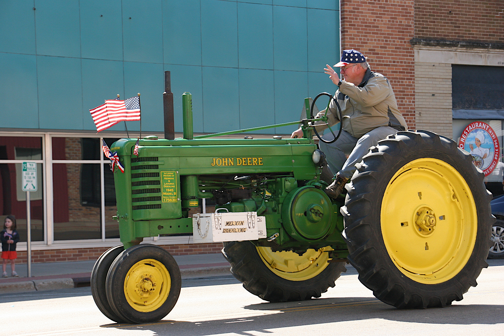 A vet rides on the Moose Lodge float during the Memorial Day parade. Minnesota Prairie Roots copyrighted photo 2021.