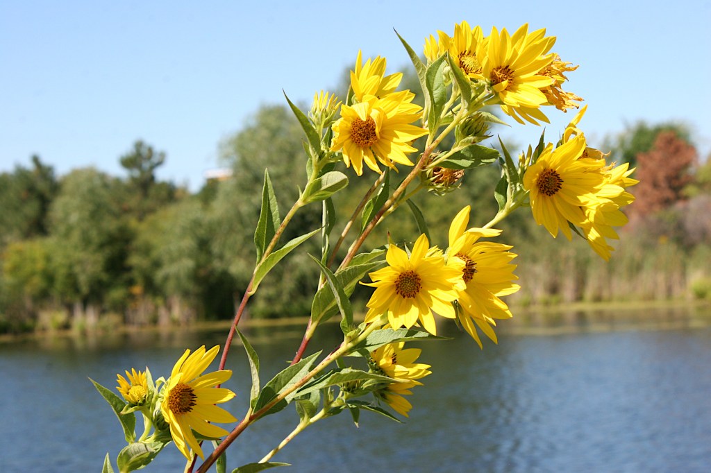 If my current photos were poems, they would write of Autumn and her floral dress flowing, billowing as she walks the runway of Faribault Energy Park. (My poetic interpretation of all those colorful wildflowers edging trails.) Audience applause rising. (My poetic interpretation of the droning traffic on I-35 and the noisy power plant.) I imagine that as easily as I recall prairie memories.