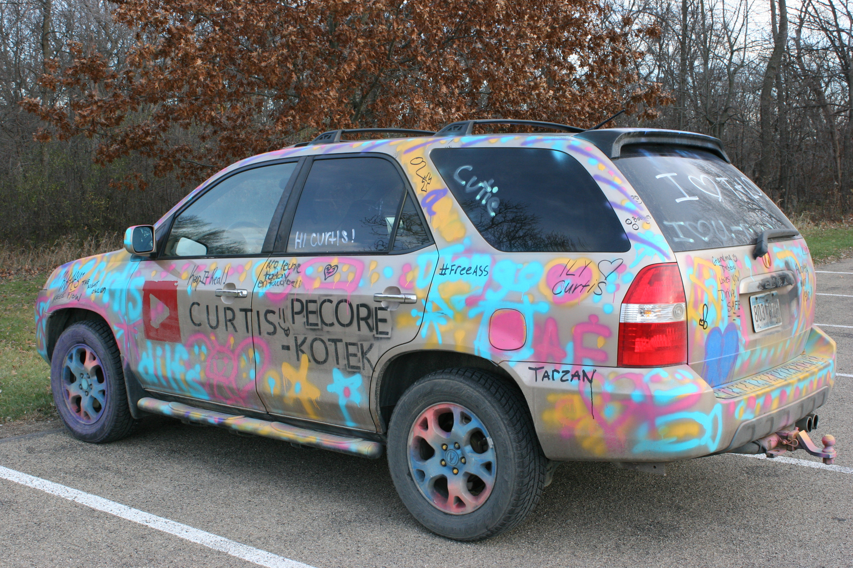 Later, while walking across the parking lot, I spotted a colorful car covered in messages. I put two and two together and determined this vehicle belonged to the young photographer I’d met earlier. I liked the car, a work of art really, enough to snap a few frames.