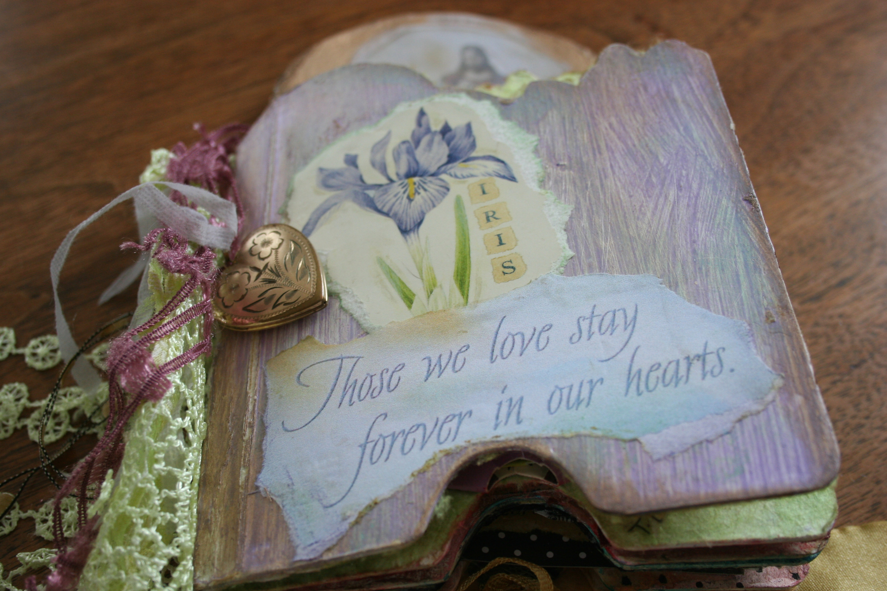 What beautiful, meaningful and heartfelt words. That message titles a 10-page mini altered book crafted by my dear friend Kathleen upon the recent death of my mom. The book arrived unexpectedly from Kathleen’s secluded cabin studio in Idaho on a February morning, when I most needed it.