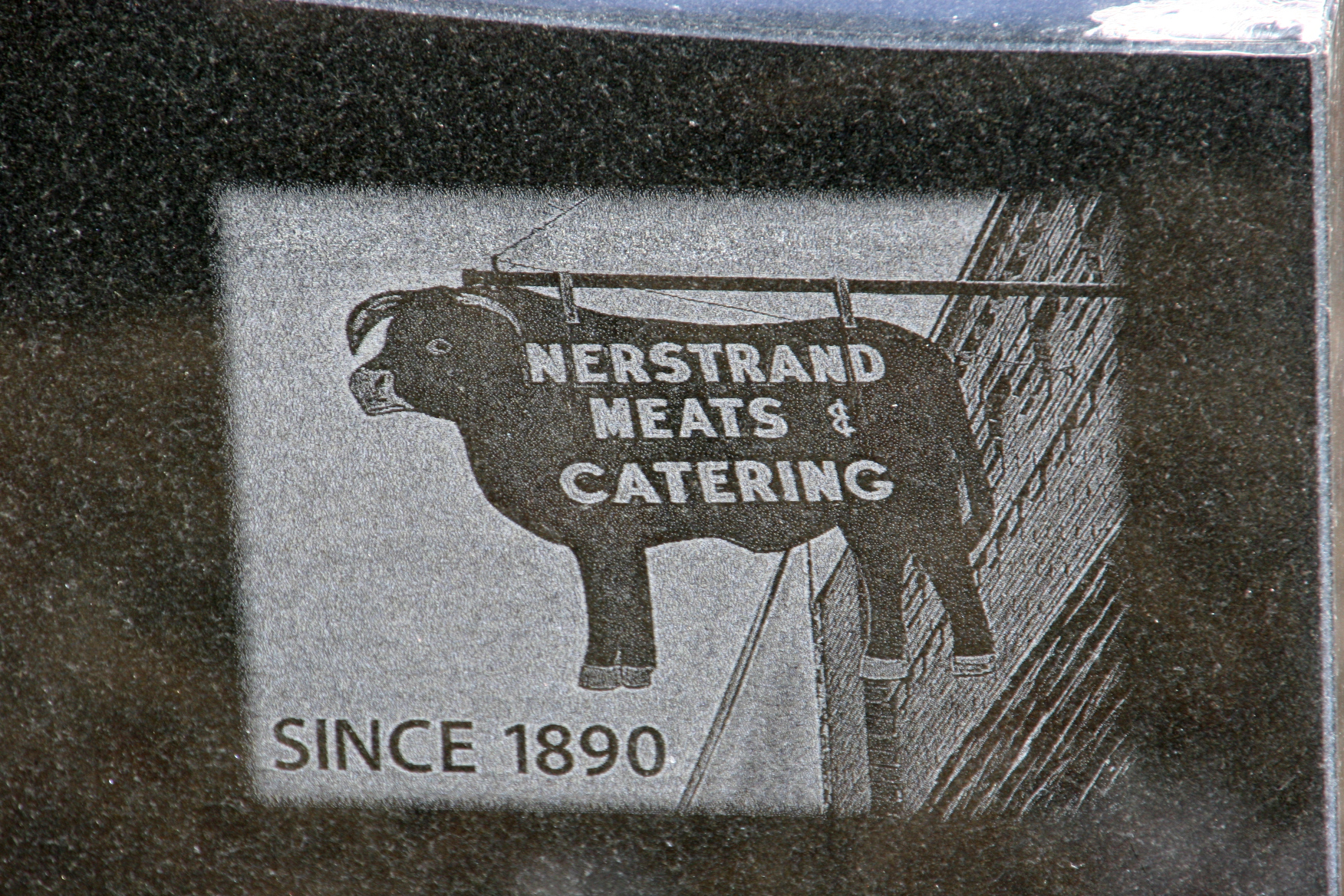 Through the years, the art of grave markers has evolved to more elaborate artwork that tells a story. For example, at Valley Grove an image of Nerstrand Meats & Catering decorates the stone of Clyde Heggedahl of that long-standing business co-owned with his wife, Mary. He died in 2016. At the meat market.