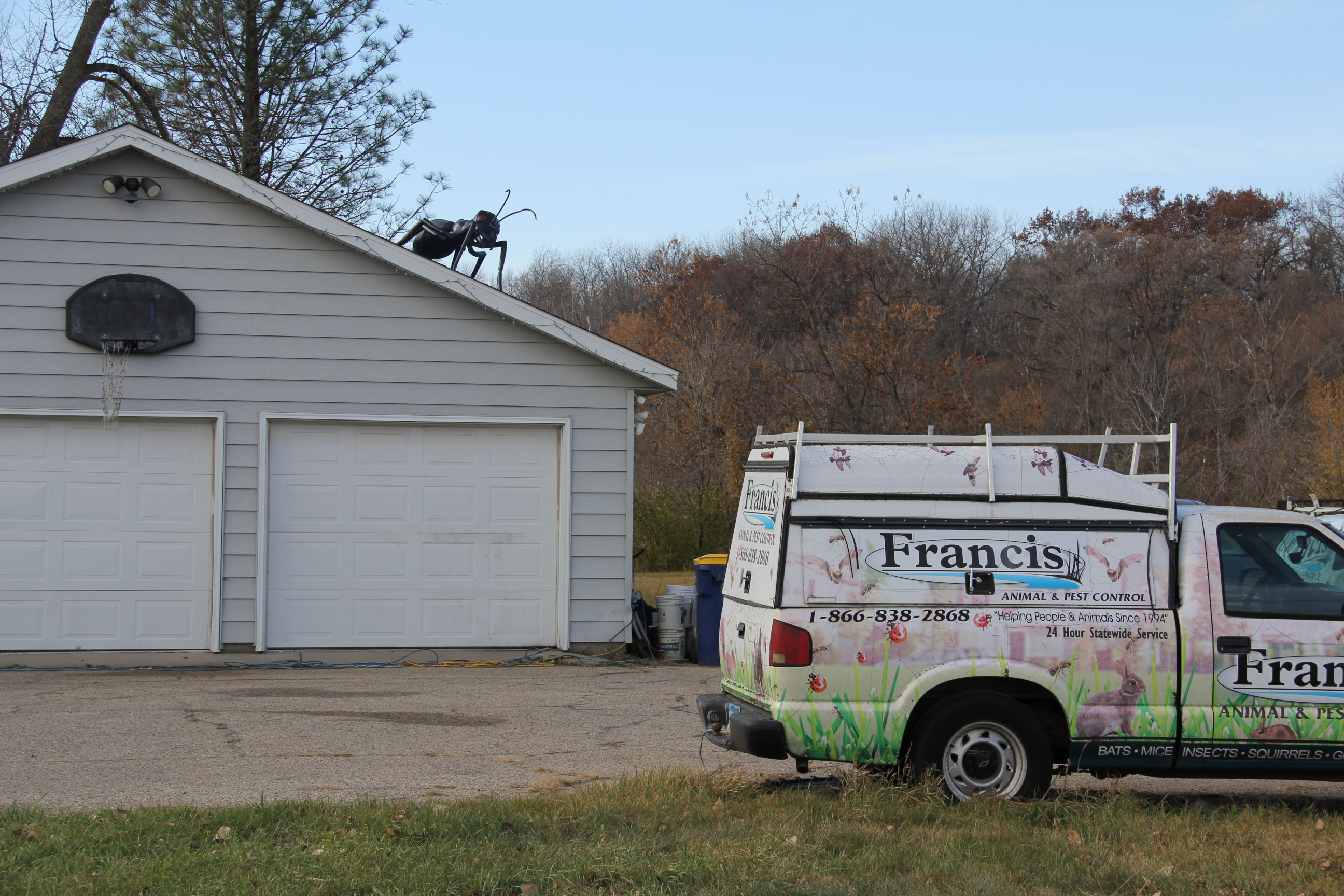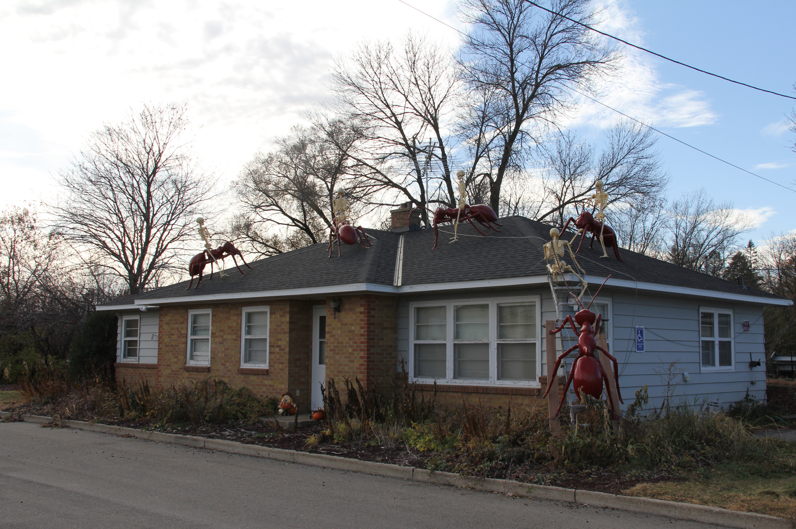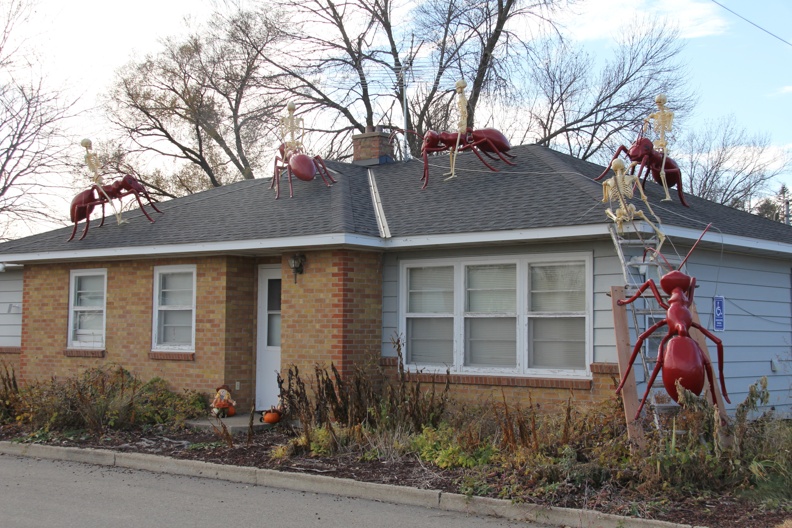 IT’S A HALLOWEEN ATTRACTION, a roadside oddity and creative marketing all rolled into one. That would be the gigantic rooftop ants and skeletons at Francis Animal & Pest Control along busy Lyndale Avenue North in Faribault.
