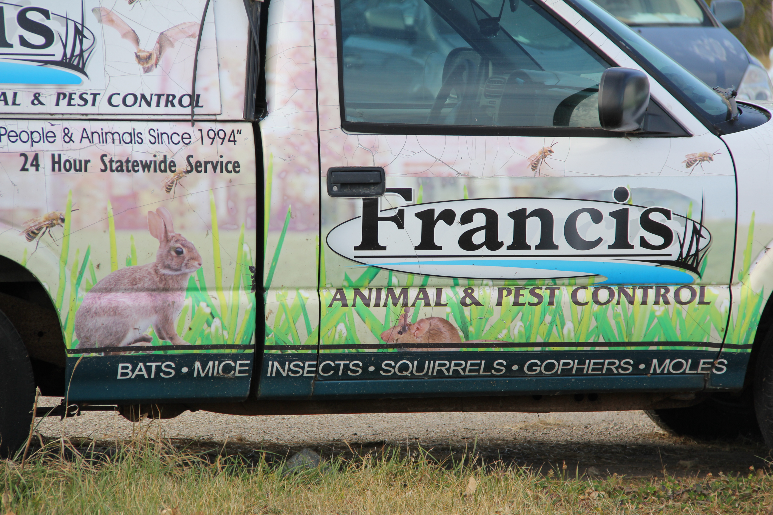 This staging of ants, and now skeletons, in a highly-visible location certainly attracts attention to a business that specializes in animal and pest control. The business website lists 23 insects, rodents, birds and small animals that it will rid from properties. That includes ants. And bats, lest you experience a Halloween invasion. Feral animals are also on the list, so that could include Halloween-attracting black feral cats.