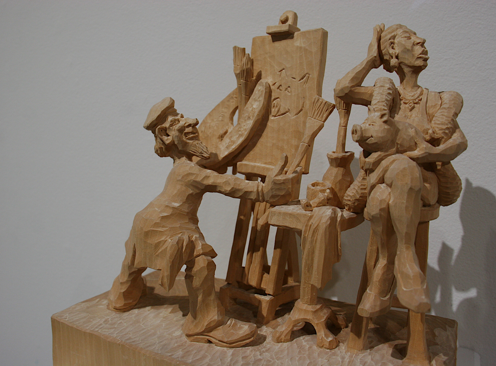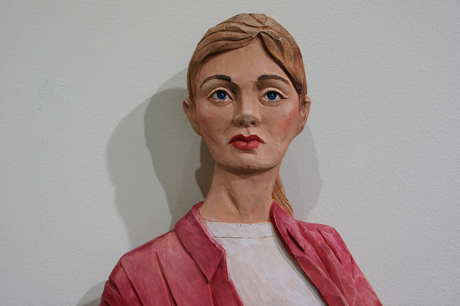 As I meandered through the Paradise’s current exhibits, I observed incredible talent and variety in the art displayed. Inside the largest gallery, I meandered among woodcarvings by three Faribault artists, two carving for more than 40 years. Ivan Whillock and Marv Kaisersatt, are award-winning long-time carvers, nationally and internationally-recognized. Their work is decidedly different, but their creative skills decidedly the same—excellent. Both are quiet, humble men.