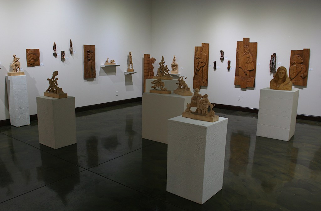 Woodcarvings fill the main gallery at the Paradise. (Minnesota Prairie Roots copyrighted photo October 2022)
