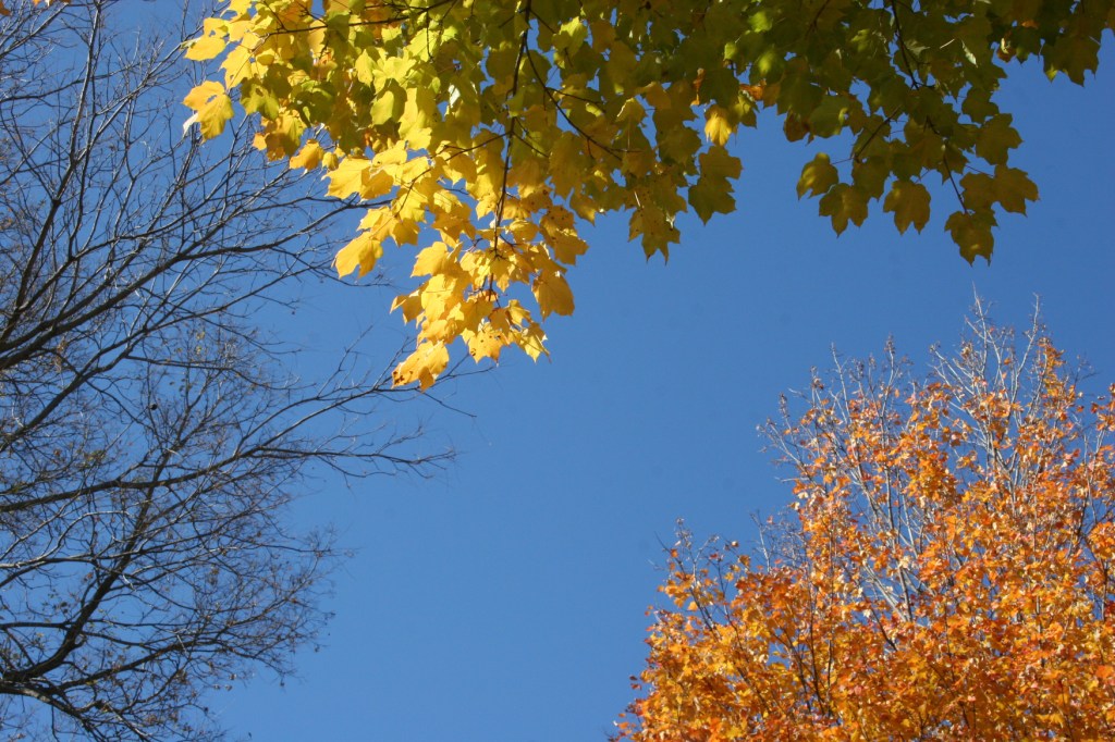 But in the haste of all that preparation, there’s also a need to slow down and delight in autumn. Simply stepping outside my home to view the backyard maple and neighbors’ trees fills my soul. I love the contrast of orange, red, yellow against the bold October sky. Sometimes when I look skyward, I see a mix of seasons from green leaves, to autumnal leaves to bare branches.